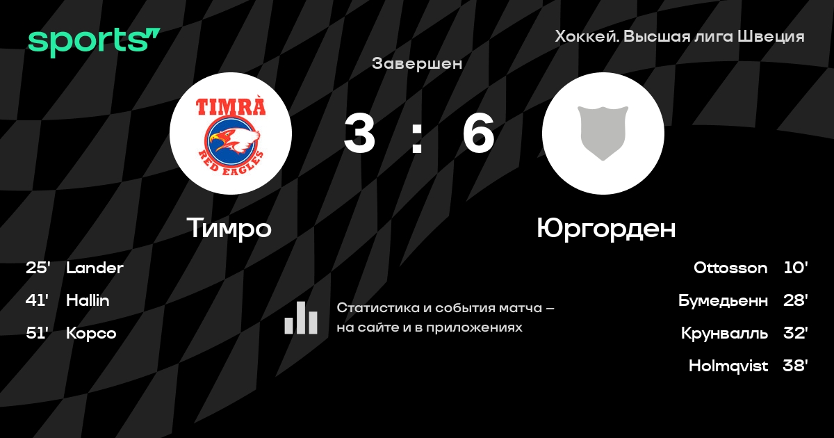 В прошедшем матче в рамках турнира Хоккей. Высшая лига Швеция состоялась встреча команд Тимро - Юргорден