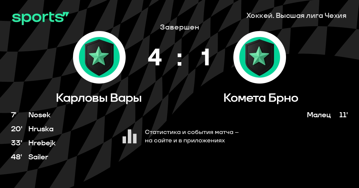 В прошедшем матче в рамках турнира Хоккей. Высшая лига Чехия состоялась встреча команд Карловы Вары - Комета Брно