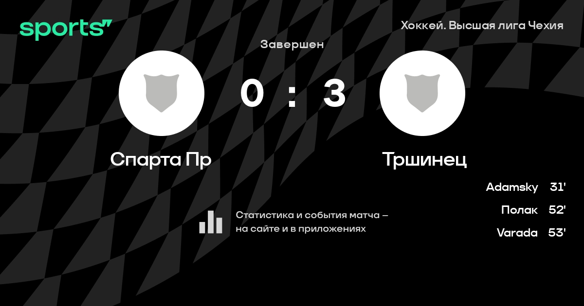 В прошедшем матче в рамках турнира Хоккей. Высшая лига Чехия состоялась встреча команд Спарта Пр - Тршинец