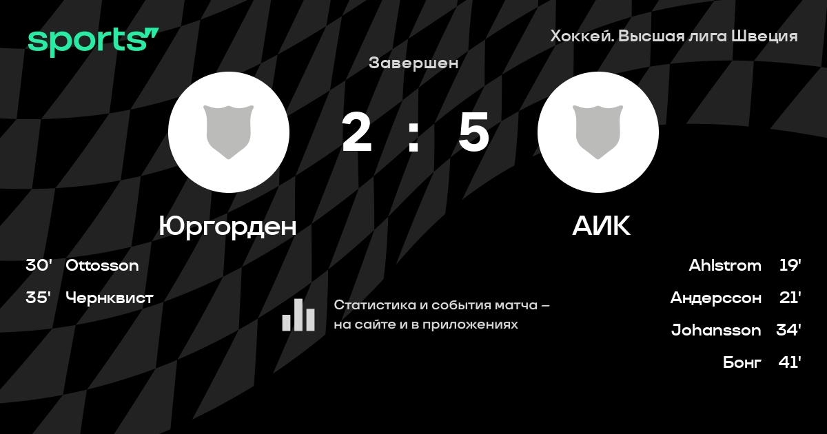 В прошедшем матче в рамках турнира Хоккей. Высшая лига Швеция состоялась встреча команд Юргорден - АИК
