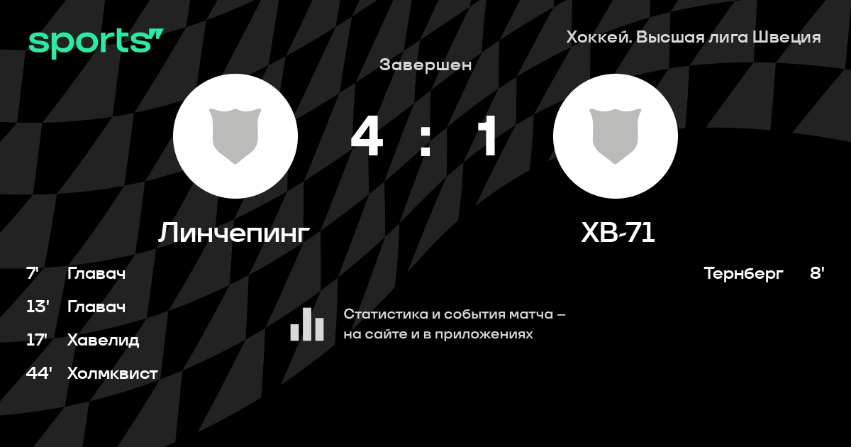 В прошедшем матче в рамках турнира Хоккей. Высшая лига Швеция состоялась встреча команд Линчепинг - ХВ-71