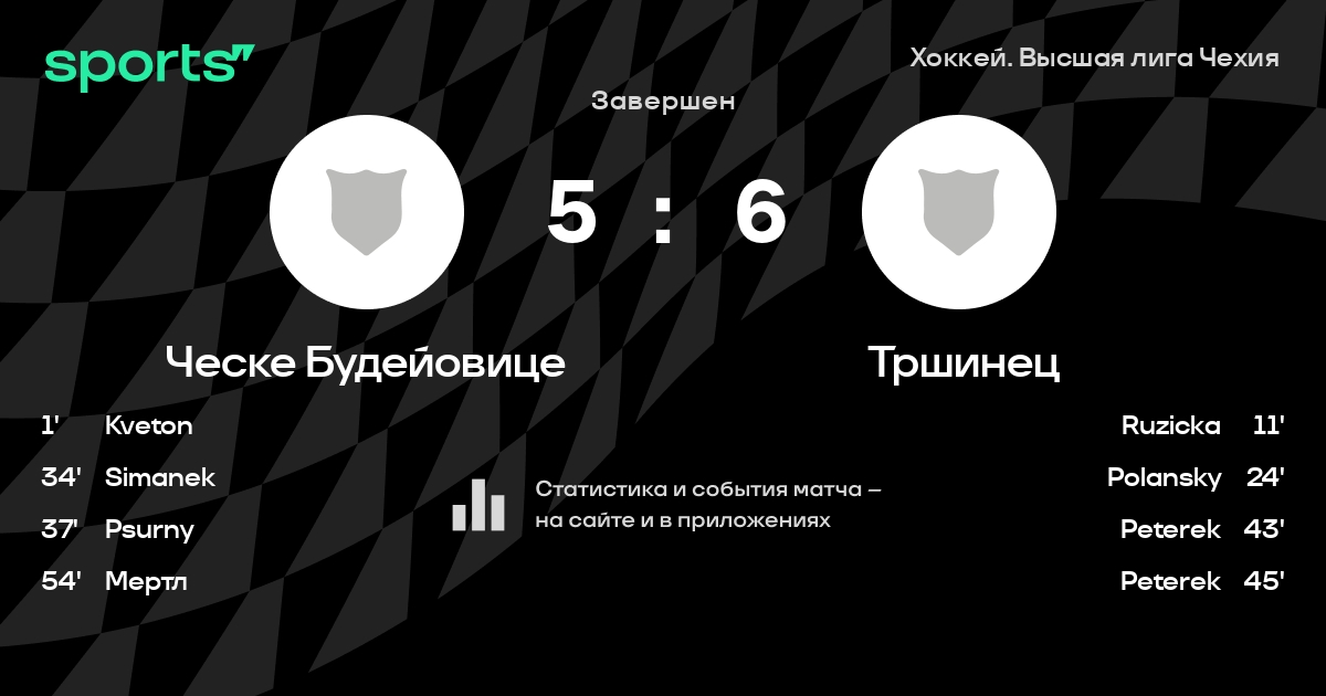 В прошедшем матче в рамках турнира Хоккей. Высшая лига Чехия состоялась встреча команд Ческе Будейовице - Тршинец