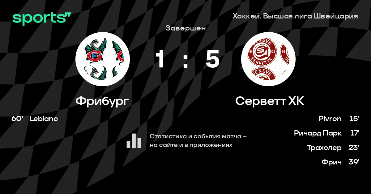 В прошедшем матче в рамках турнира Хоккей. Высшая лига Швейцария состоялась встреча команд Фрибург - Серветт ХК