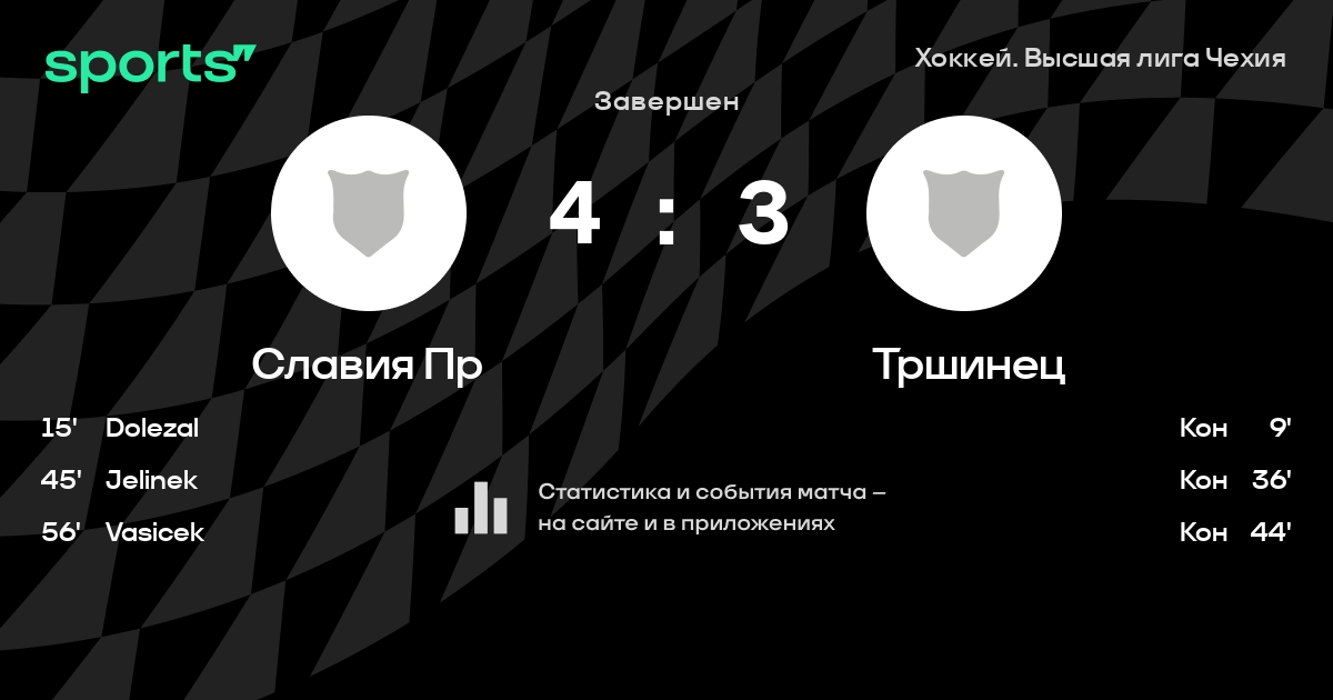 В прошедшем матче в рамках турнира Хоккей. Высшая лига Чехия состоялась встреча команд Славия Пр - Тршинец