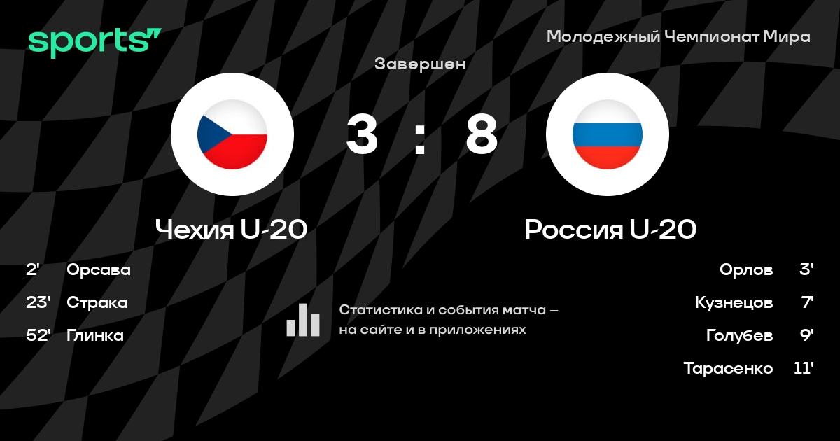 В прошедшем матче в рамках турнира Молодежный Чемпионат Мира (Групповой раунд) состоялась встреча команд Чехия U-20 - Россия U-20