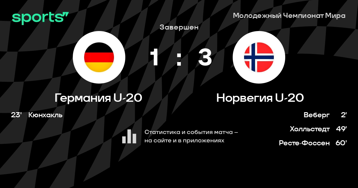 В прошедшем матче в рамках турнира Молодежный Чемпионат Мира (Утешительный раунд) состоялась встреча команд Германия U-20 - Норвегия U-20