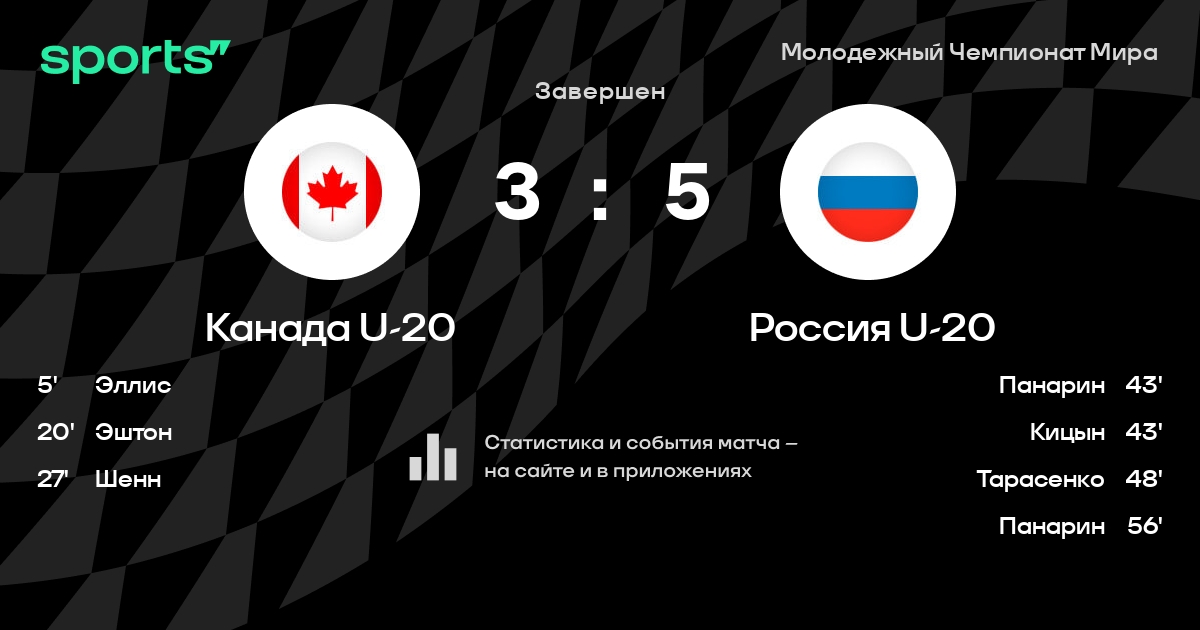 В прошедшем матче в рамках турнира Молодежный Чемпионат Мира (Финал) состоялась встреча команд Канада U-20 - Россия U-20