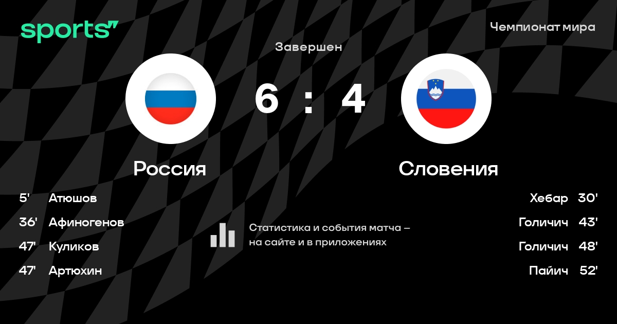 В прошедшем матче в рамках турнира Чемпионат мира (Предварительный этап. 2 тур) состоялась встреча команд Россия - Словения