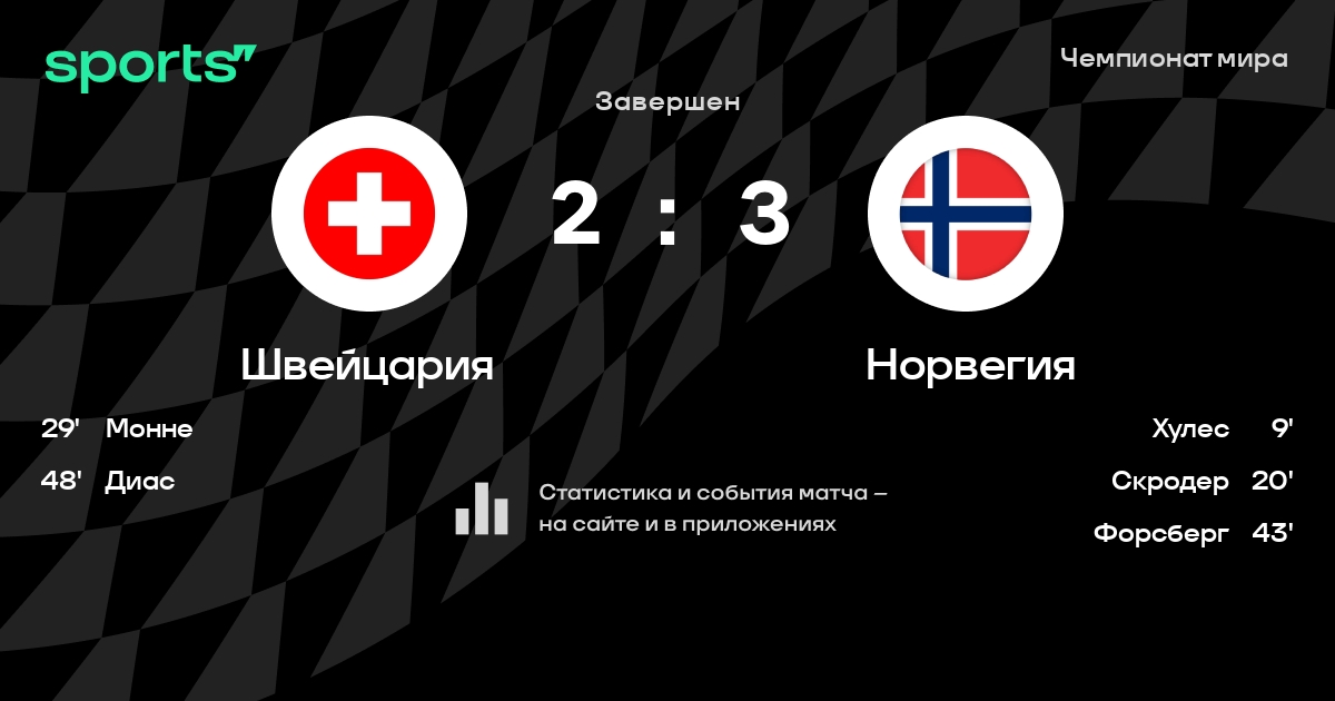 Как прошел матч, смотрите в текстовой трансляции Швейцария - Норвегия на Sports.ru