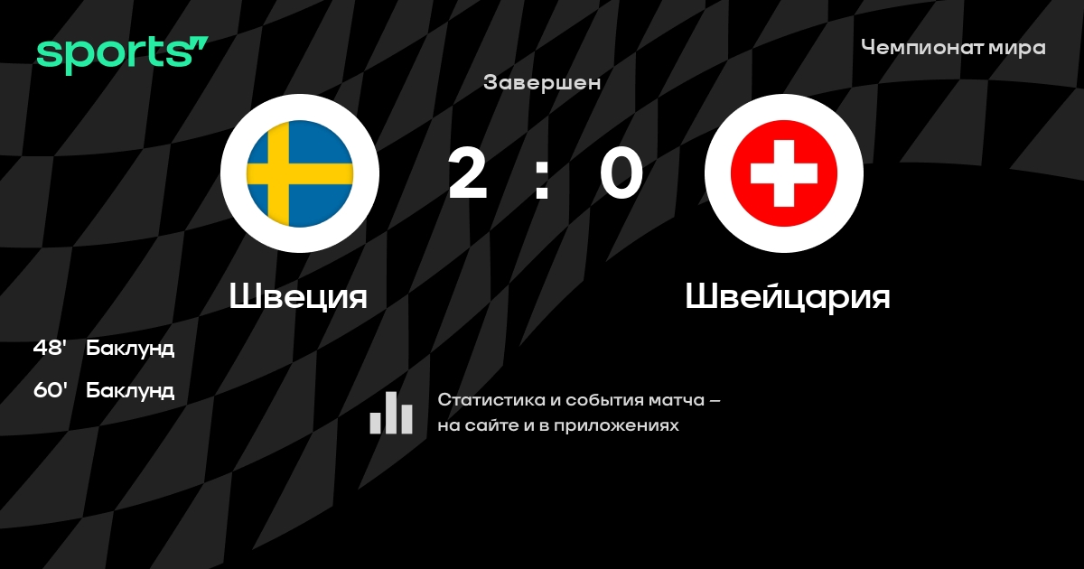 В прошедшем матче в рамках турнира Чемпионат мира (Квалификационный этап. 2 тур) состоялась встреча команд Швеция - Швейцария