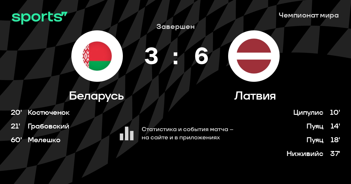 В прошедшем матче в рамках турнира Чемпионат мира (Утешительный раунд. 2 тур) состоялась встреча команд Беларусь - Латвия