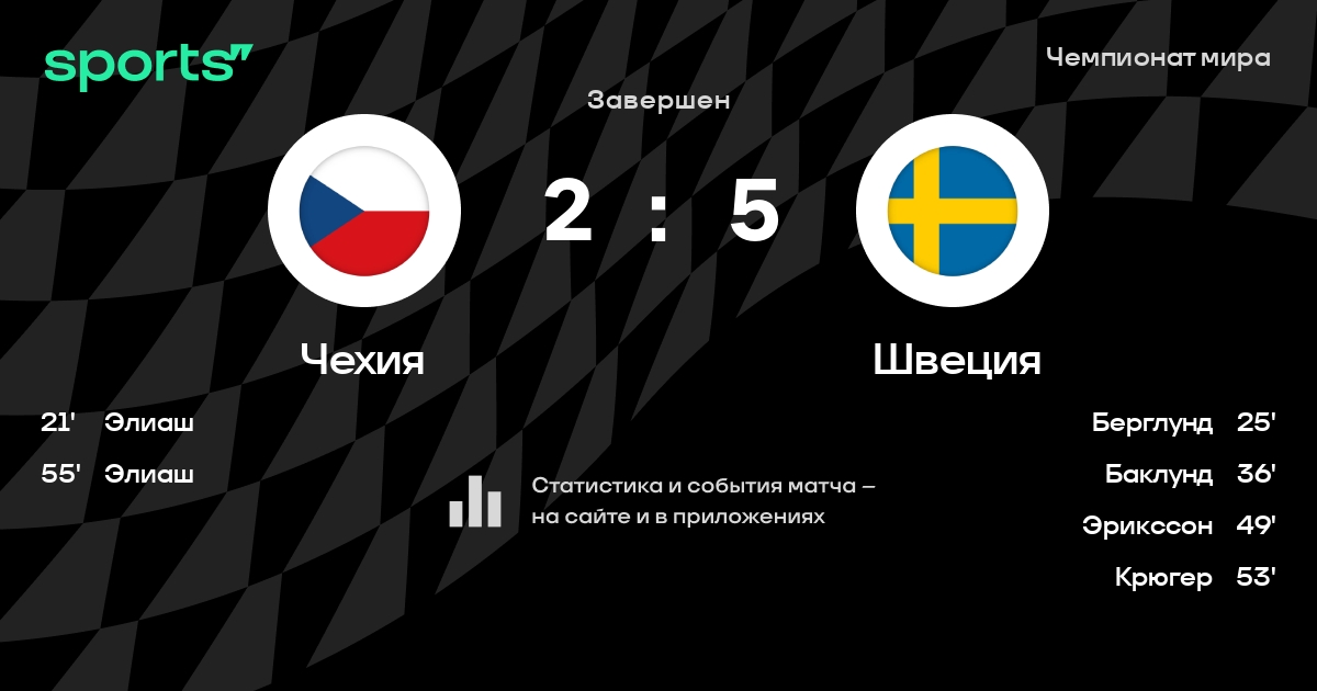 В прошедшем матче в рамках турнира Чемпионат мира (Полуфинал) состоялась встреча команд Чехия - Швеция