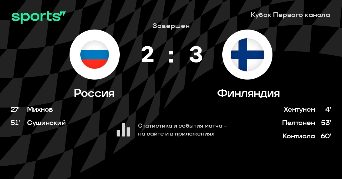 В прошедшем матче в рамках турнира Кубок Первого канала состоялась встреча команд Россия - Финляндия