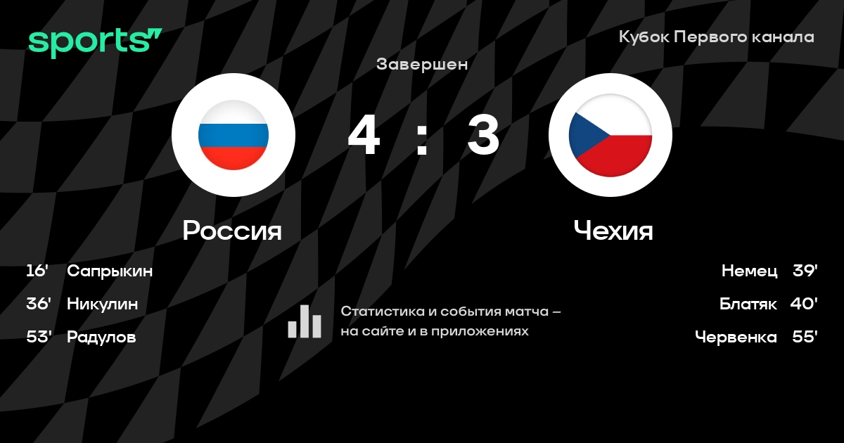 В прошедшем матче в рамках турнира Кубок Первого канала состоялась встреча команд Россия - Чехия