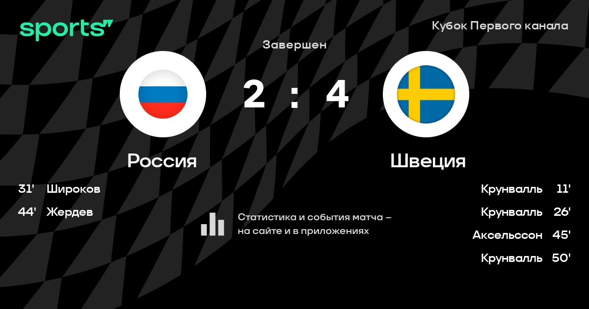 В прошедшем матче в рамках турнира Кубок Первого канала состоялась встреча команд Россия - Швеция