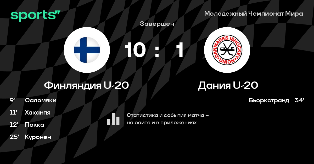 В прошедшем матче в рамках турнира Молодежный Чемпионат Мира (Групповой раунд) состоялась встреча команд Финляндия U-20 - Дания U-20