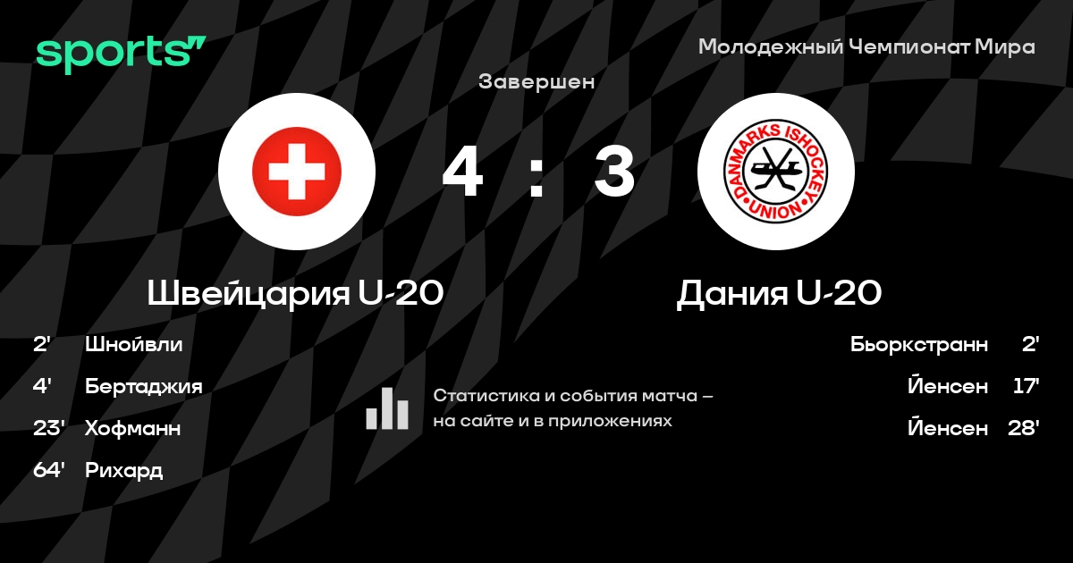 В прошедшем матче в рамках турнира Молодежный Чемпионат Мира (Утешительный раунд) состоялась встреча команд Швейцария U-20 - Дания U-20