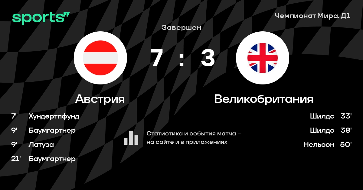 В прошедшем матче в рамках турнира Чемпионат Мира. Д1 (Группа A) состоялась встреча команд Австрия - Великобритания в городе Ljubljana на стадионе Arena Sto?ice