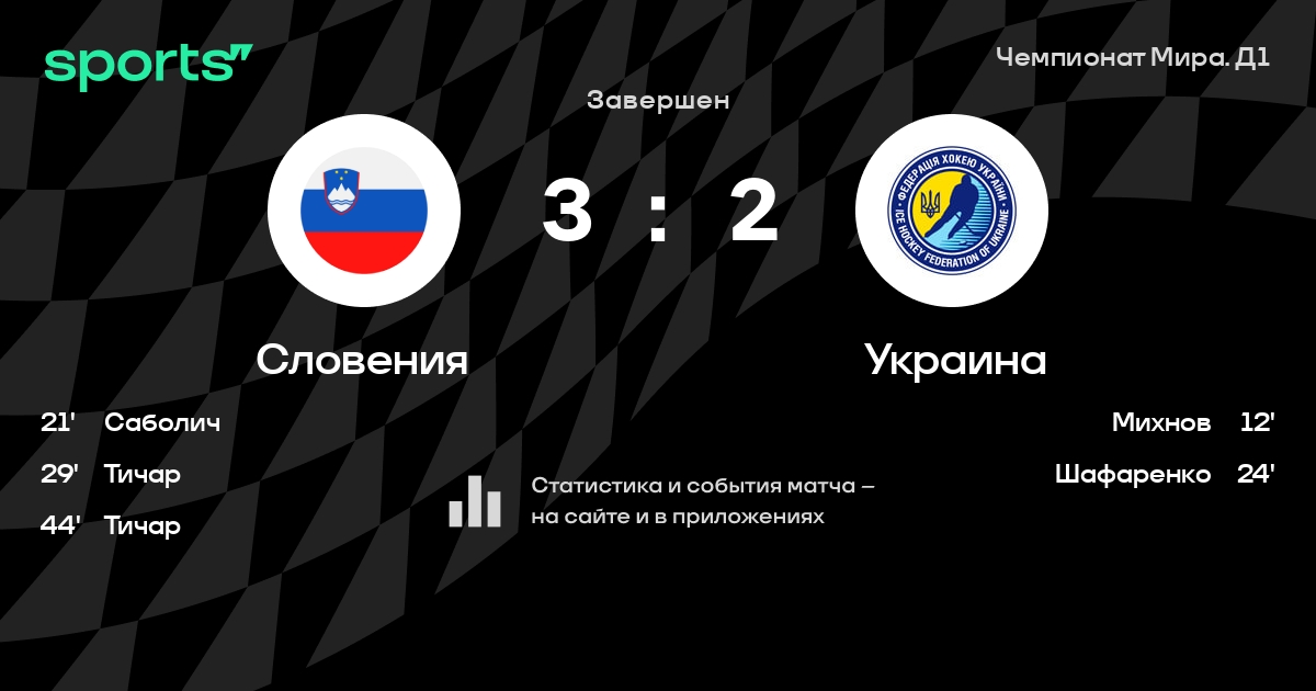 В прошедшем матче в рамках турнира Чемпионат Мира. Д1 (Группа A) состоялась встреча команд Словения - Украина в городе Ljubljana на стадионе Arena Sto?ice