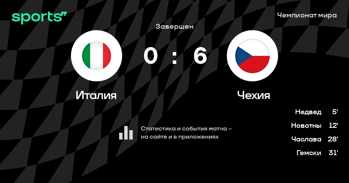 В прошедшем матче в рамках турнира Чемпионат мира (Группа B) состоялась встреча команд Италия - Чехия в городе Стокгольм (Швеция) на стадионе Avicii Arena (вместимость - 14119)