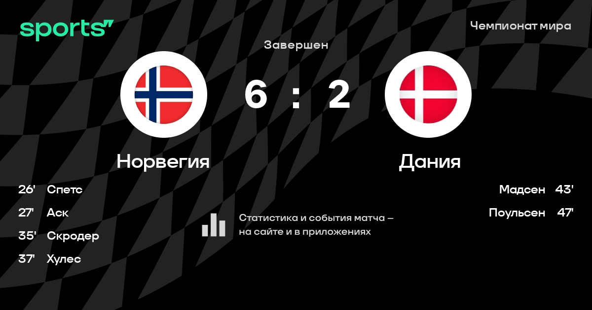 Как прошел матч, смотрите в текстовой трансляции Норвегия - Дания на Sports.ru