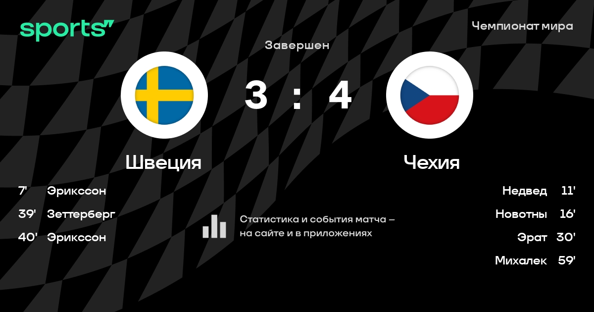 Как прошел матч, смотрите в текстовой трансляции Швеция - Чехия на Sports.ru