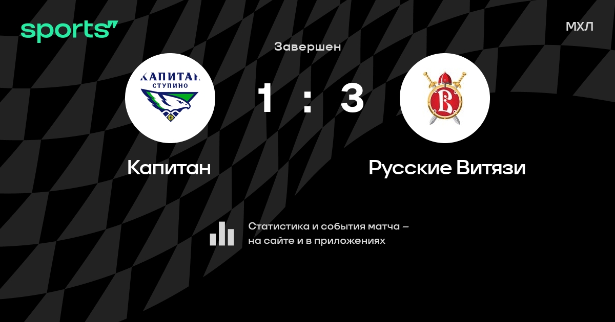 В прошедшем матче в рамках турнира МХЛ состоялась встреча команд Капитан - Русские Витязи со счетом 1 : 3.