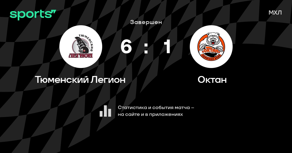 В прошедшем матче в рамках турнира МХЛ состоялась встреча команд Тюменский Легион - Октан со счетом 6 : 1.