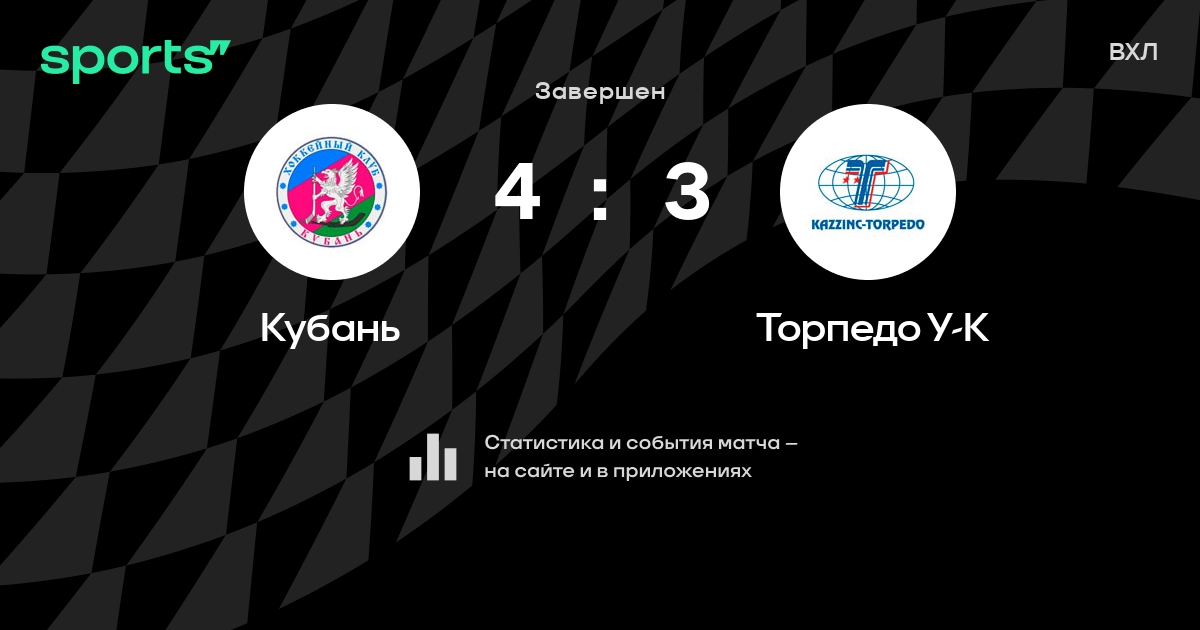В прошедшем матче в рамках турнира ВХЛ состоялась встреча команд Кубань - Торпедо У-К