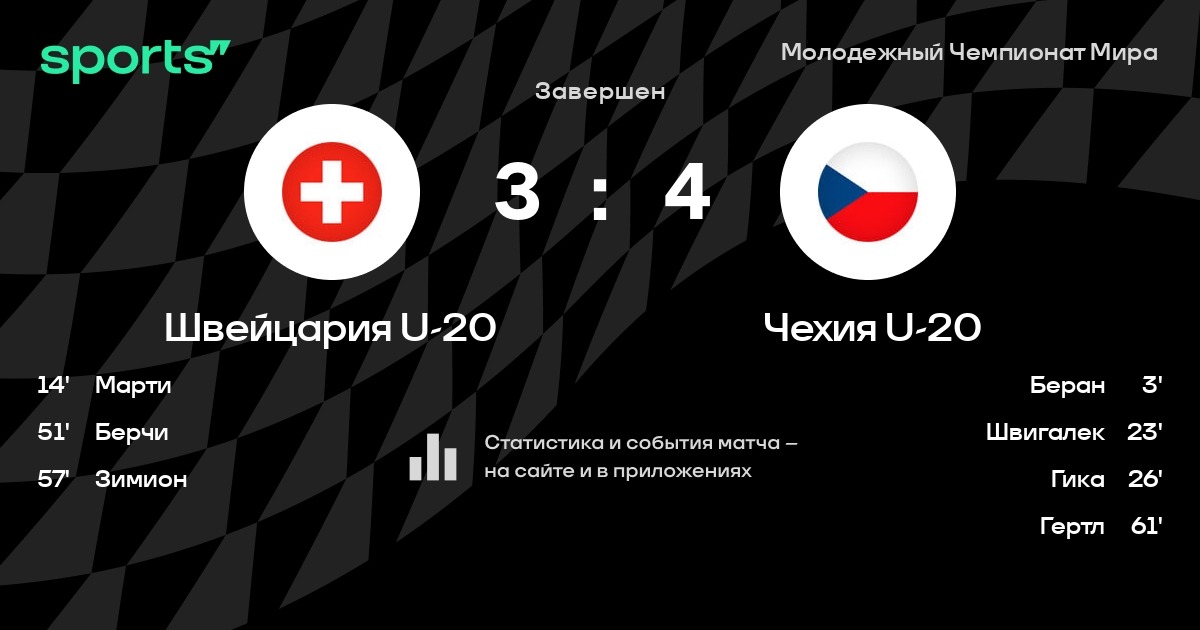 Как прошел матч, смотрите в текстовой трансляции Швейцария U-20 - Чехия U-20 на Sports.ru