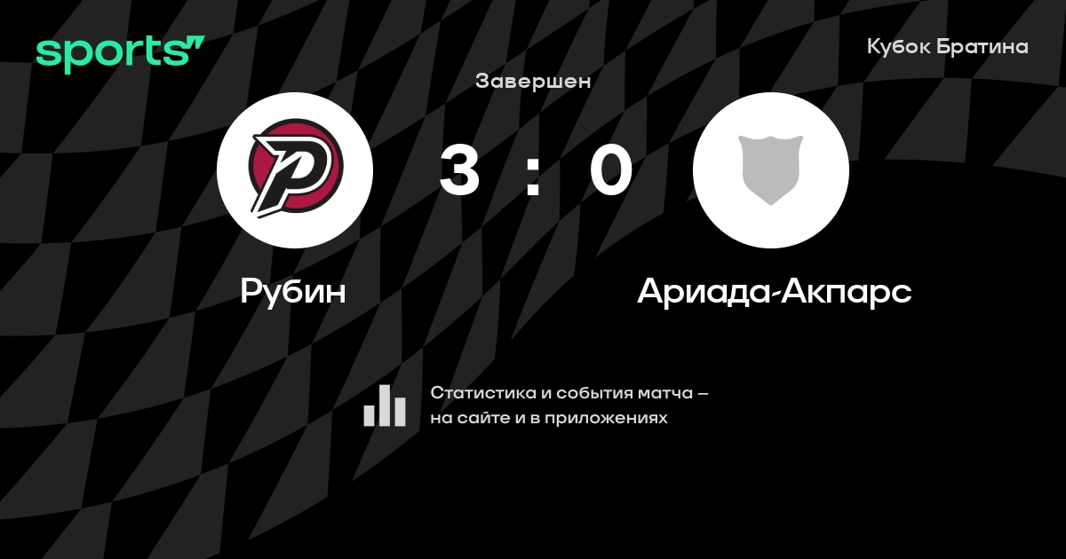 В прошедшем матче в рамках турнира Кубок Братина (Четвертьфинал) состоялась встреча команд Рубин - Ариада-Акпарс