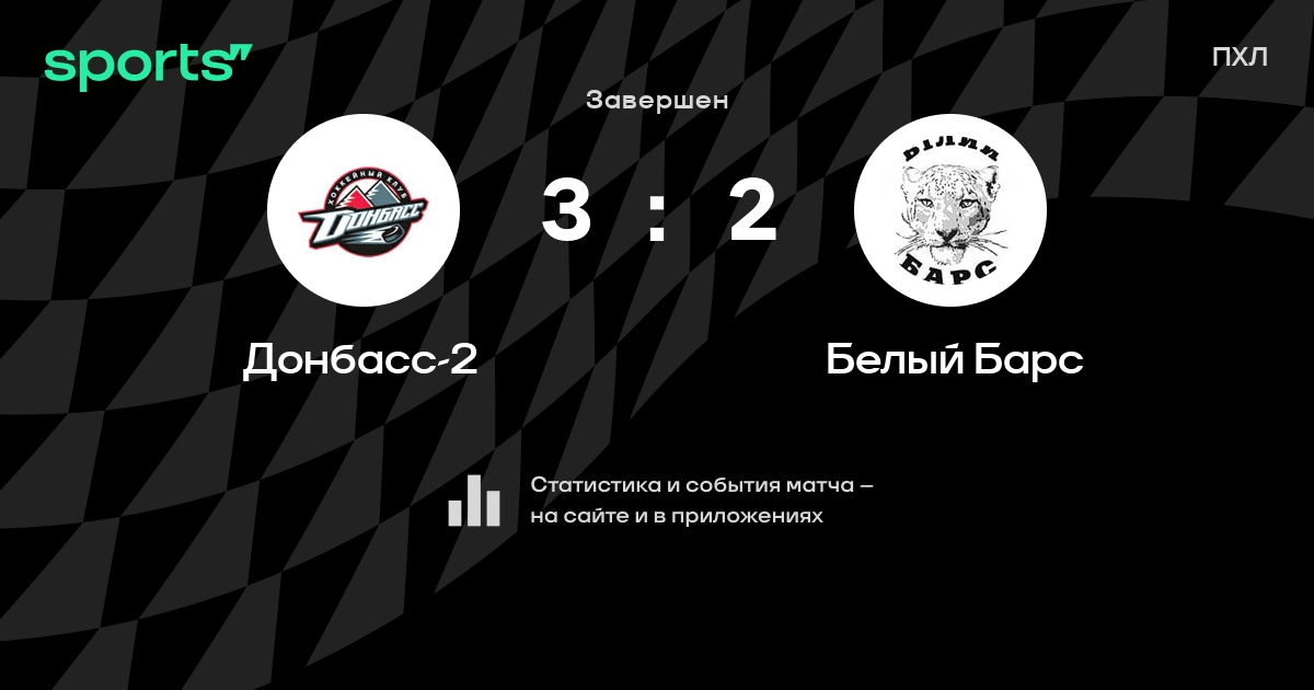 В прошедшем матче в рамках турнира ПХЛ (Регулярный чемпионат) состоялась встреча команд Донбасс-2 - Белый Барс
