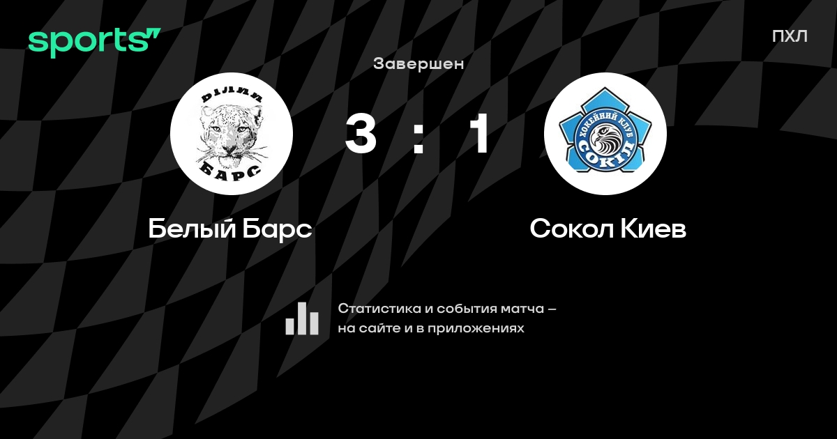 В прошедшем матче в рамках турнира ПХЛ (Регулярный чемпионат) состоялась встреча команд Белый Барс - Сокол Киев