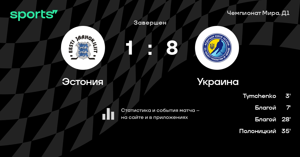 В прошедшем матче в рамках турнира Чемпионат Мира. Д1 (Группа B) состоялась встреча команд Эстония - Украина в городе Донецк (Украина) на стадионе Арена Дружба (вместимость - 4130)