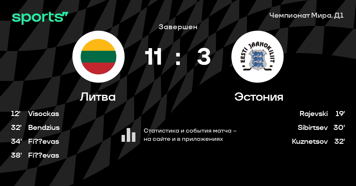 В прошедшем матче в рамках турнира Чемпионат Мира. Д1 (Группа B) состоялась встреча команд Литва - Эстония в городе Донецк (Украина) на стадионе Арена Дружба (вместимость - 4130)