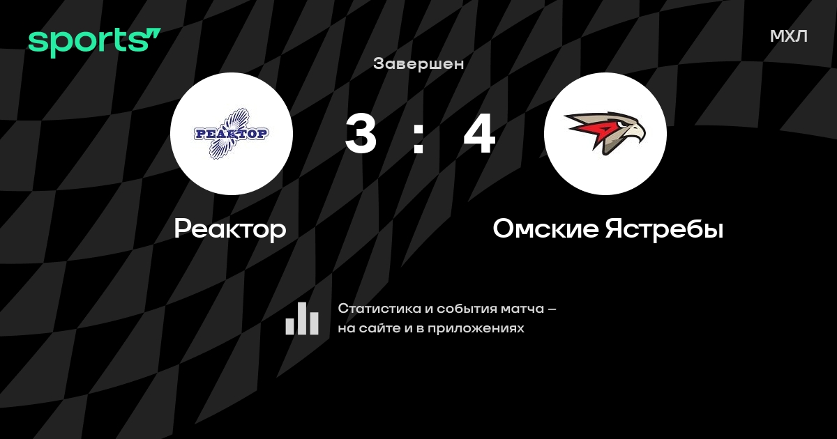 В прошедшем матче в рамках турнира МХЛ состоялась встреча команд Реактор - Омские Ястребы со счетом 3 : 4.
