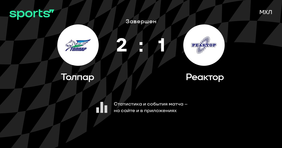В прошедшем матче в рамках турнира МХЛ состоялась встреча команд Толпар - Реактор со счетом 2 : 1.