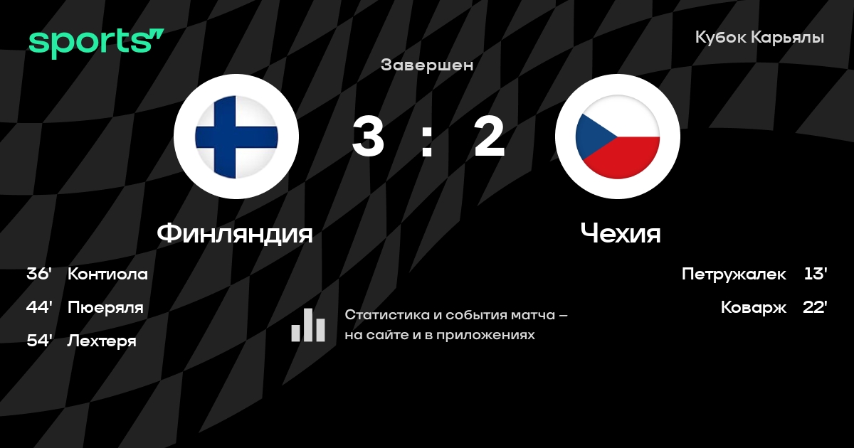 В прошедшем матче в рамках турнира Кубок Карьялы состоялась встреча команд Финляндия - Чехия в городе Хельсинки (Финляндия) на стадионе Хартвалл Арена (вместимость - 13506)