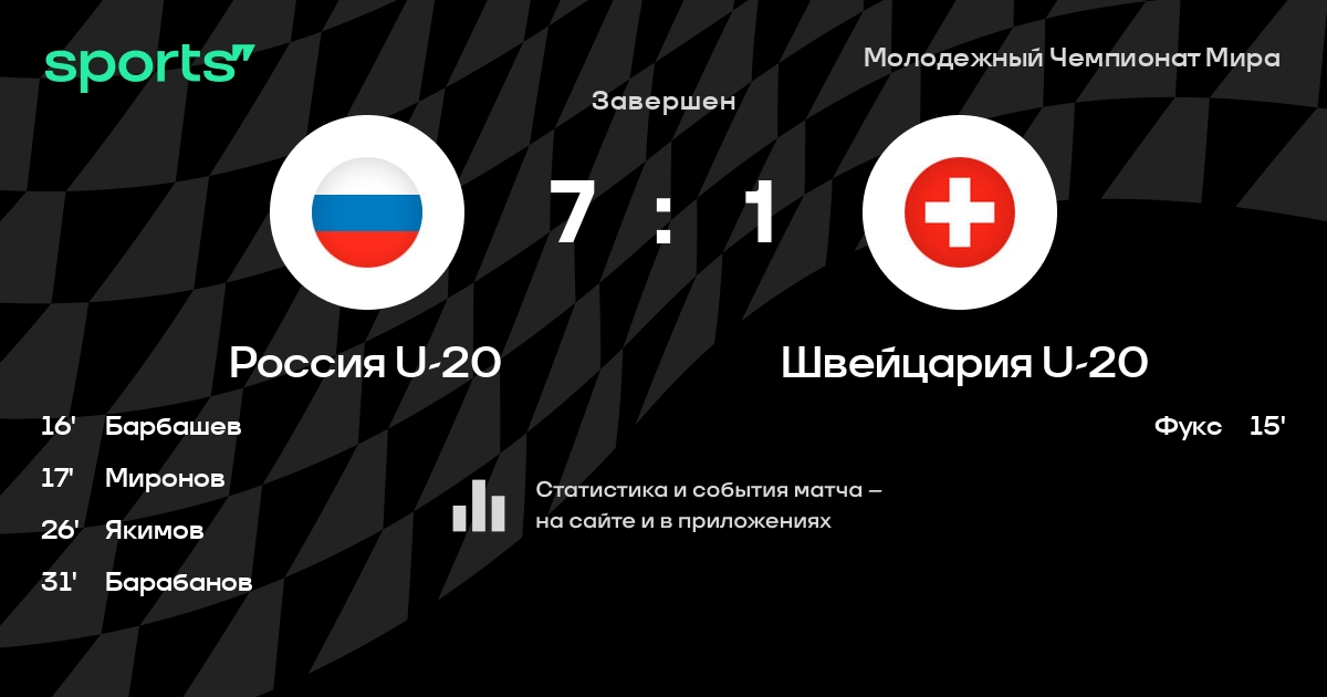 Как прошел матч, смотрите в текстовой трансляции Россия U-20 - Швейцария U-20 на Sports.ru