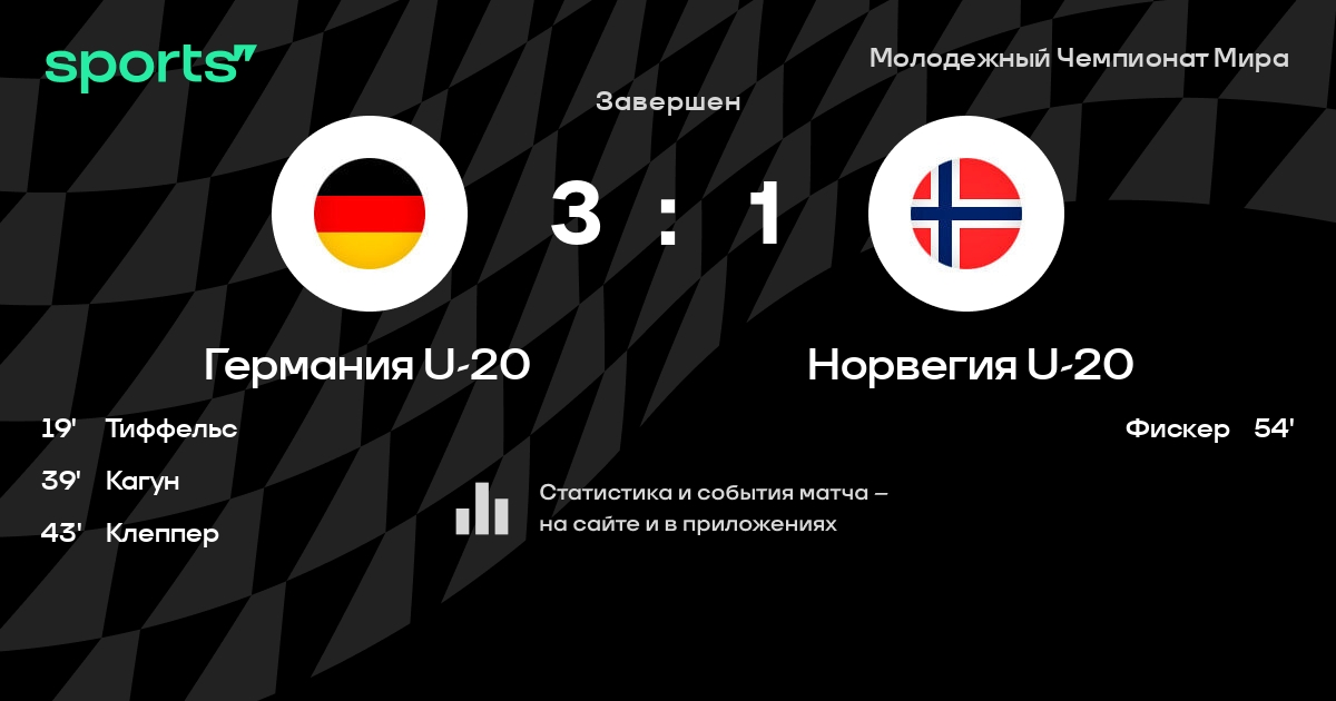 В прошедшем матче в рамках турнира Молодежный Чемпионат Мира (Утешительный раунд) состоялась встреча команд Германия U-20 - Норвегия U-20 в городе Мальме (Швеция) на стадионе Мальме Исстадион (вместимость - 5800)