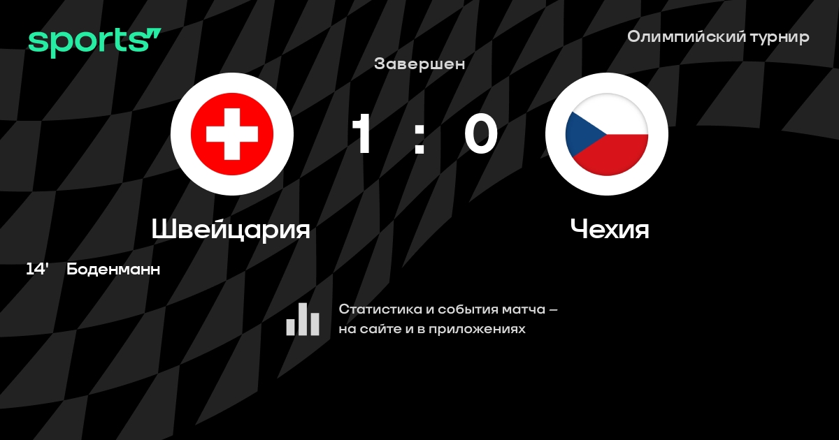 В прошедшем матче в рамках турнира Олимпийский турнир (3-й тур) состоялась встреча команд Швейцария - Чехия в городе Сочи (Россия) на стадионе Большой (вместимость - 12000)