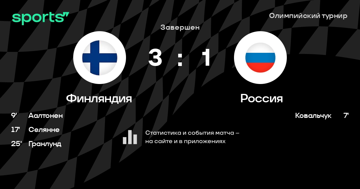 В прошедшем матче в рамках турнира Олимпийский турнир (Четвертьфинал) состоялась встреча команд Финляндия - Россия в городе Сочи (Россия) на стадионе Большой (вместимость - 12000)
