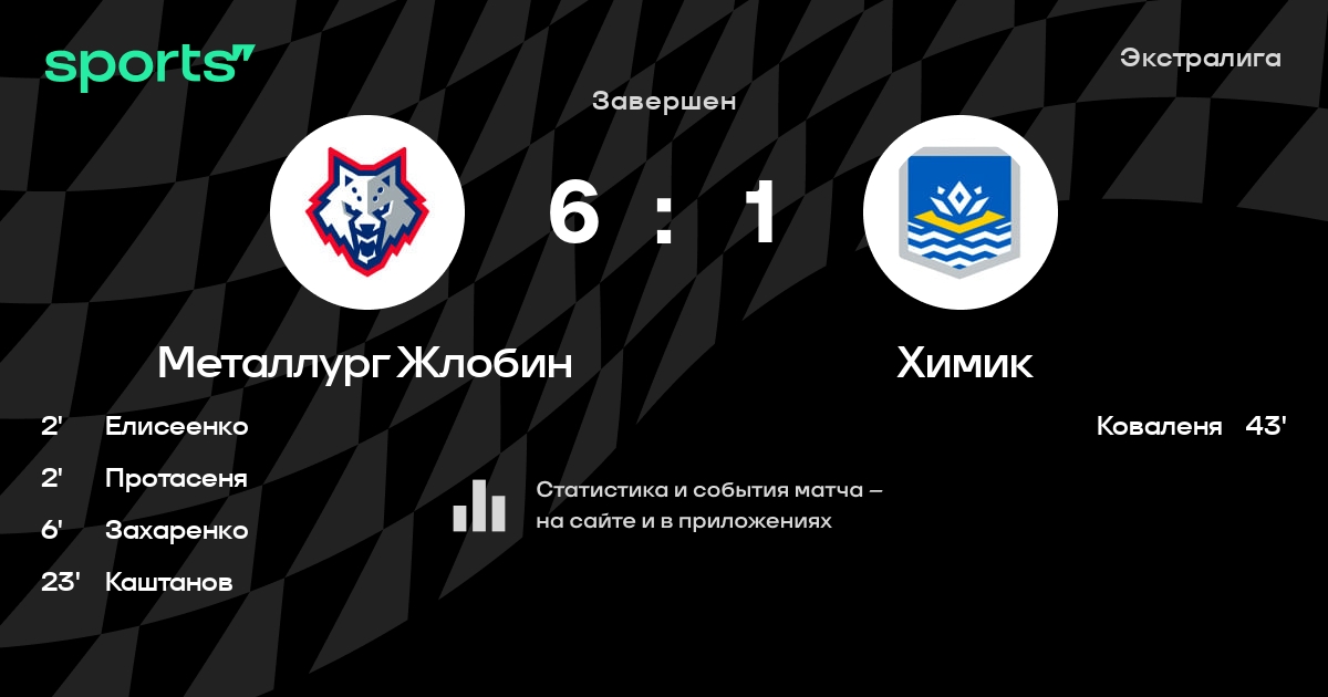 В прошедшем матче в рамках турнира Экстралига состоялась встреча команд Металлург Жлобин - Химик в городе Жлобин (Беларусь) на стадионе Ледовый дворец Металлург (вместимость - 2018)