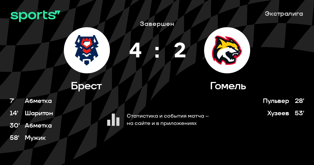 В прошедшем матче в рамках турнира Экстралига состоялась встреча команд Брест - Гомель в городе Брест (Беларусь) на стадионе Ледовый дворец Брест (вместимость - 2000)