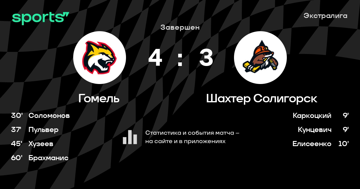 В прошедшем матче в рамках турнира Экстралига состоялась встреча команд Гомель - Шахтер Солигорск в городе Гомель (Беларусь) на стадионе Ледовый дворец Гомель (вместимость - 2700)