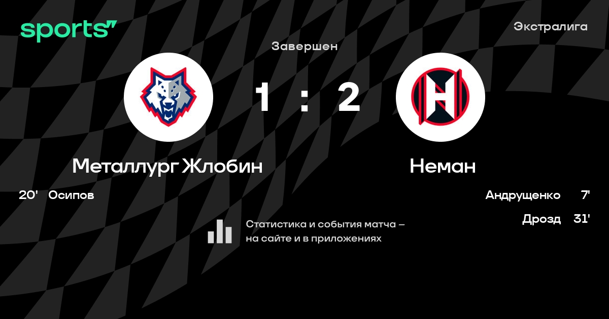 В прошедшем матче в рамках турнира Экстралига состоялась встреча команд Металлург Жлобин - Неман в городе Жлобин (Беларусь) на стадионе Ледовый дворец Металлург (вместимость - 2018)