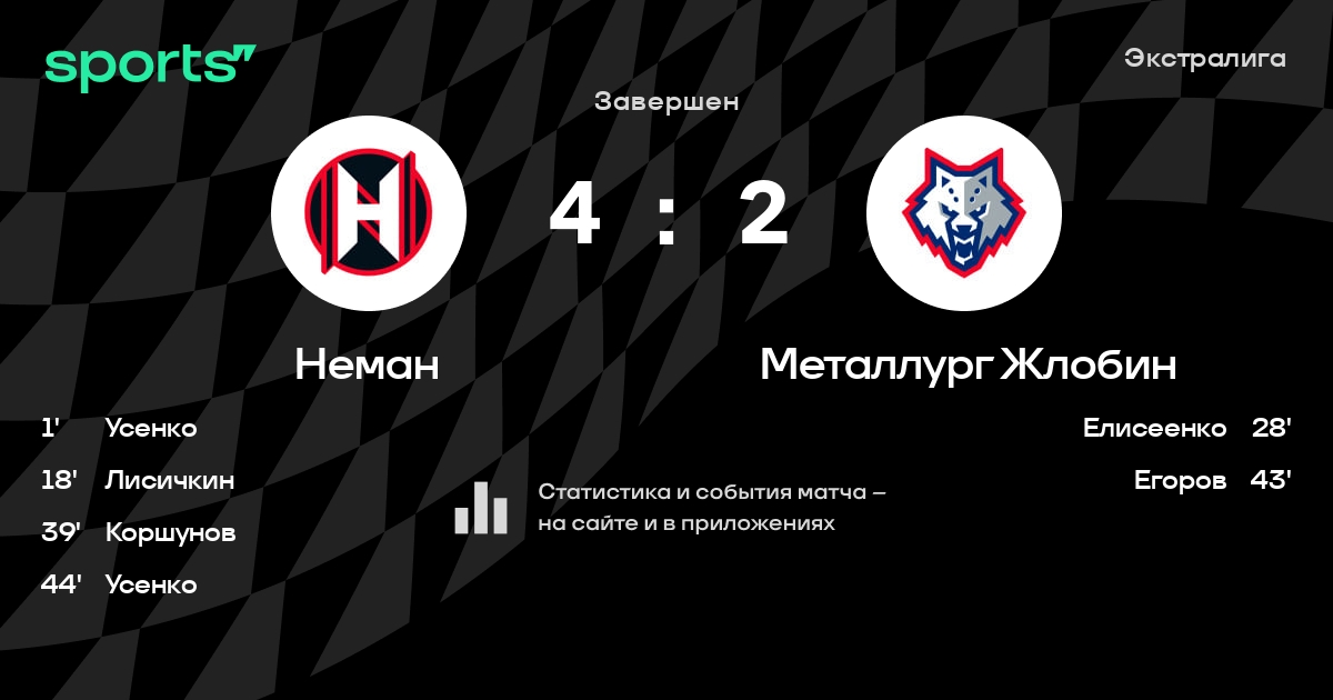 В прошедшем матче в рамках турнира Экстралига состоялась встреча команд Неман - Металлург Жлобин в городе Гродно (Беларусь) на стадионе Ледовый дворец спорта Гродно (вместимость - 2500)