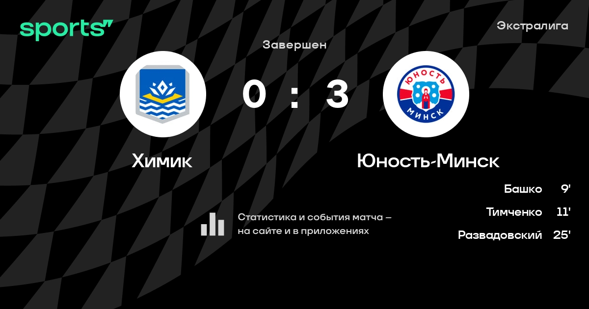 В прошедшем матче в рамках турнира Экстралига состоялась встреча команд Химик - Юность-Минск в городе Новополоцк (Беларусь) на стадионе Дворец культуры и спорта (вместимость - 1200)