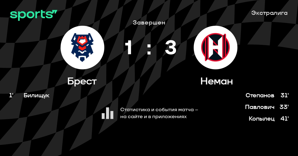 В прошедшем матче в рамках турнира Экстралига состоялась встреча команд Брест - Неман в городе Brest на стадионе Rinkla Stadium