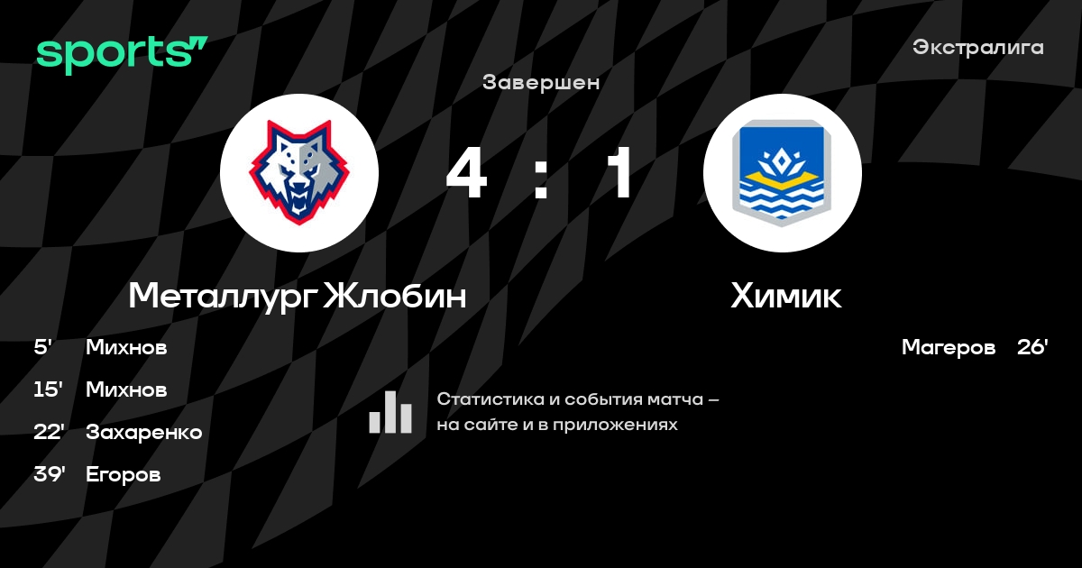 В прошедшем матче в рамках турнира Экстралига состоялась встреча команд Металлург Жлобин - Химик в городе Новокузнецк (Россия) на стадионе Дворец спорта кузнецких металлургов (вместимость - 8040)
